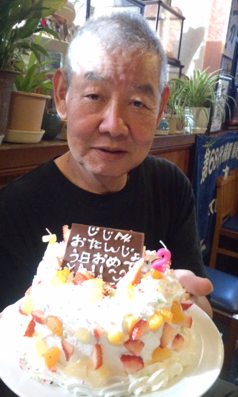 誕生日 Posted on 2018.1.20 by 女 将 返信 1月12日の主人の誕生日に 娘と孫の手作りケーキに大喜び 大鷲オープンの頃は髪も黒々 若かった主人… あれから10月で39年… 髪も白く(72歳)の4人の孫にはとーっても 甘い 甘い おじいちゃんになりました。 大鷲 女将でした