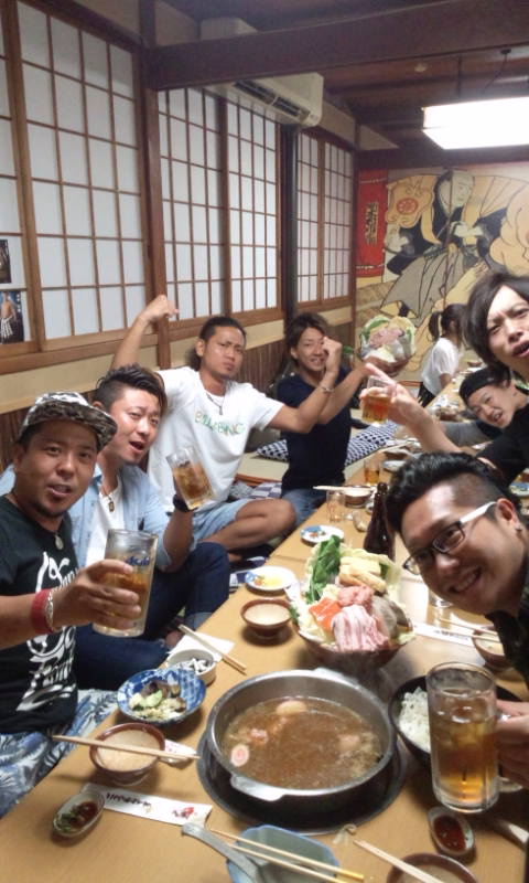 火付盗賊 Posted on 2017.7.22 by 女 将 返信 サービスプランで暑気払いに来店して下さった火付盗賊の皆さん(^-^) いっぱい食べて! いっぱい飲んで! いっぱいおしゃべりして! きっと元気いっぱい!で夏を乗り切れるでしょう。 8月12日のイベントも いっぱい!来てくれるといいですね〜♪♪♪ ごっちゃんです 大鷲 女将でした