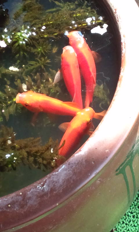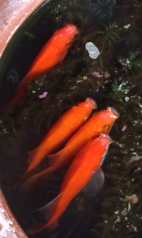 金魚 Posted on 2017.7.24 by 女 将 返信 今 夏祭りシーズンですね(^-^) 孫が金魚すくいで取ったのを 置いていかれ 私が毎日エサをあげて三年 小さかった金魚が ずい分大きくなりましたよ ごっちゃんです 大鷲 女将でした