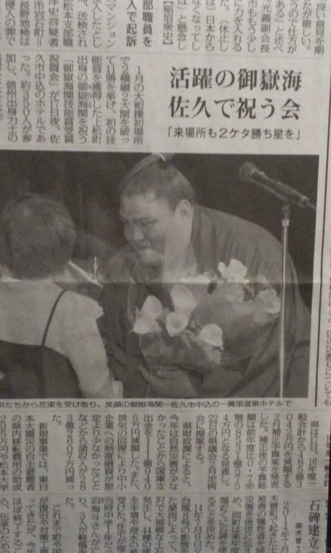 御嶽海関 Posted on 2017.2.4 by 女 将 返信 17日金曜日6時(開演)より ホテルゴールデンセンチュリーで 今場所頑張った 御嶽海関のお祝いと激励会を開催します。 参加したい方 0267ー63−0118 大鷲 10日まで連絡下さい 参加お待ちしております。きっと心に残る楽しいパーティーになりますよ ごっちゃんです 大鷲 女将でした