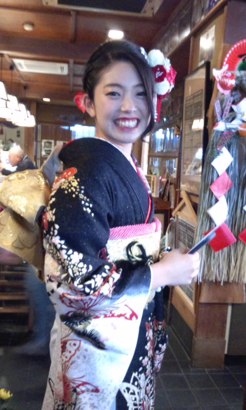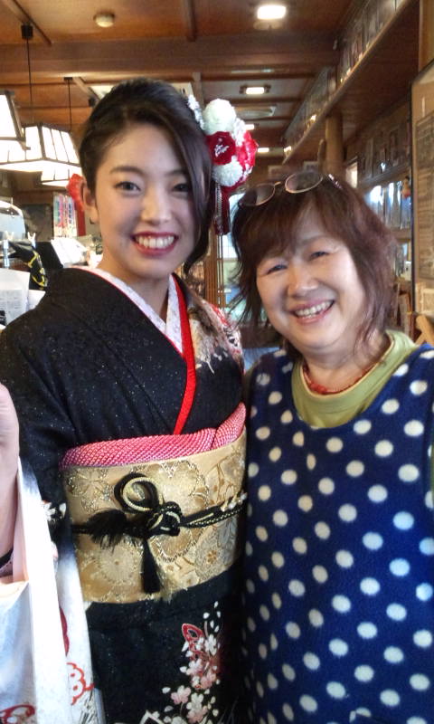 成人式 Posted on 2017.3.5 by 女 将 返信 幼稚園の頃から おじいちゃんに連れられて遊びに来ていた なぎさちゃん 今は東京の大学に行っているんですが 成人式の着物姿を見せに来てくれました。 小さい時から来るとハグしていた なぎさちゃん20才になっても お互いにハグしてしまうんです。何歳までハグしてくれるかな ? ? おばあちゃんにな〜っても暖か〜く付き合ってたいね♪♪ ごっちゃんです 大鷲 女将でした。