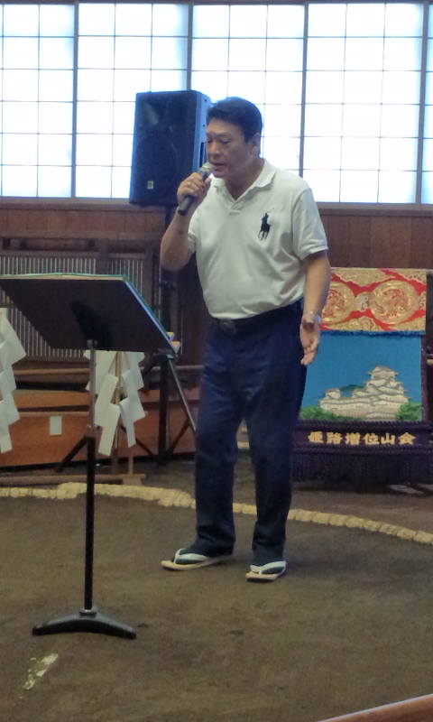 増位山 Posted on 2016.9.13 by 女 将 返信 朝稽古ツアーの時 増位山さんのお店にちゃんこも食べに寄りました。 その時に親方がお店の元稽古場の土俵の上で サービスに新曲など3曲歌って下さいました。 でもそんな夕子を聞きたくて 私のリクエストで「親方〜夕子をの、り、こ、に変えてお願い〜」 皆さんの のりこ のりこ… コールで 本当に夕子をのりこに変えて歌ってくださって ビックリ! ビックリ! 感謝! 感激!です。 美声を4曲も♪♪ それにそれぞれ土俵上で記念写真も 良い思い出が出来たと皆さんもとても大喜びでした。 ごっちゃんです 大鷲 女将でした