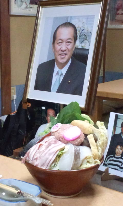 鳩山邦夫先生 Posted on 2016.6.30 by 女 将 返信 先日 鳩山邦夫先生のご家族皆さんが お食事に寄って下さいました。お持ちになった遺影写真と 私との若い頃の写真も飾って、先生が好きだったお料理を食べながら思い出話に… 3人の子供さんも結婚して お孫さんも3人 とっても明るく楽しそうなファミリー 奥様も現実を受け止めて 生きていく心構えが出来たようで安心しました(^-^) 相撲甚句の一節に ア〜 あの世とやらは どんな所 いいんじゃないかえ あの人も 行ったまんまで 戻らん 戻らん… 先生お疲れ様でした 安心してお休み下さいね… 大鷲 女将でした