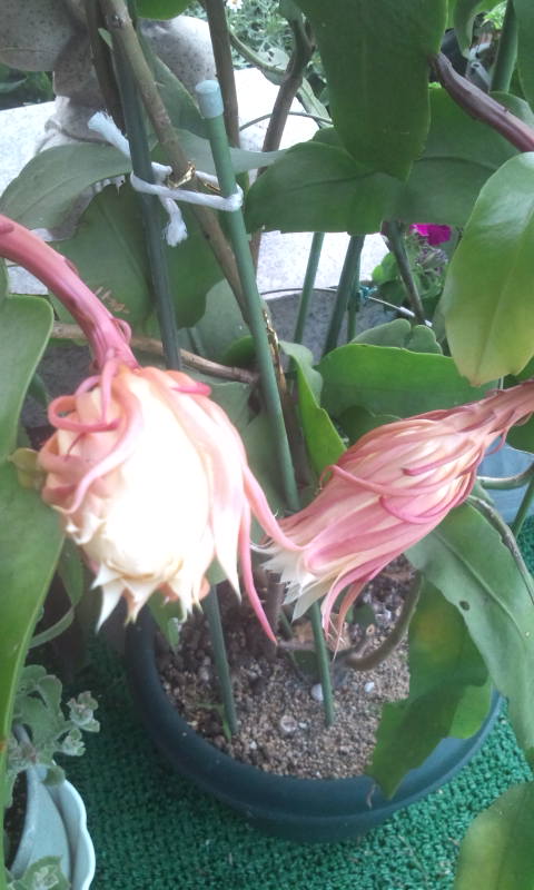月下美人 Posted on 2012.8.19 by 女 将 従業員からもらった月下美人を挿し木で育てて、今年は三輪の花が咲きました 店中になんとも言えない、良い香りがしました。 一晩で終わってしまうなんて悲しいので、冷凍室に入れて眺めて楽しんでいます ( ´∀`)